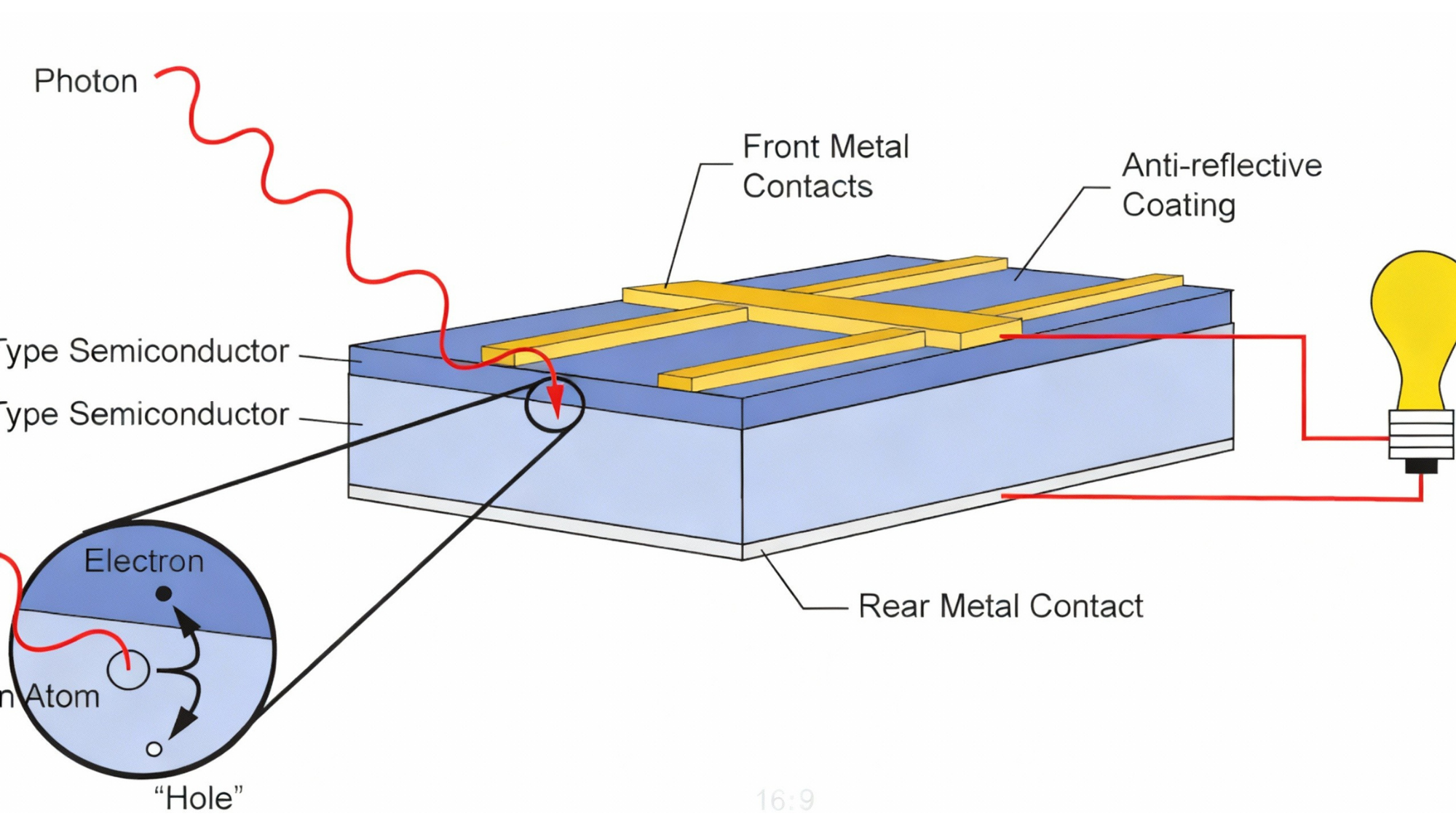 - Chất bán dẫn (Semiconductor): Vật liệu (như silicon) giúp tạo dòng điện từ ánh sáng.