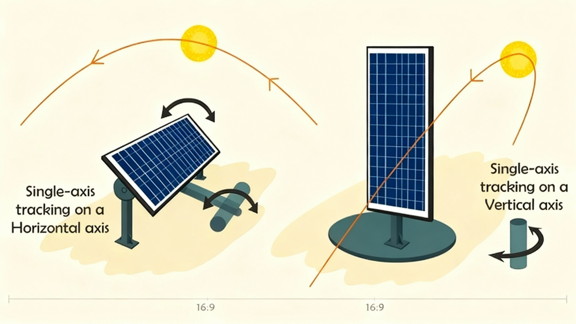 - Một trục (One-Axis): Xoay từ Đông sang Tây, phù hợp nhà xưởng.