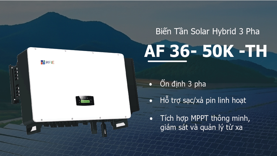 Biến tần 3 pha hybrid này có 3 mức công suất: 36 kW, 40 kW, 50 kW, phù hợp nhà xưởng tiêu thụ 10,000-20,000 kWh/tháng. Nó kết nối với tấm pin mặt trời (công suất tối đa 54-75 kW) và pin lưu trữ (dung lượng lớn, sạc/xả nhanh). MPower tin rằng sản phẩm này dễ dùng, mạnh mẽ, phù hợp cho doanh nghiệp muốn tiết kiệm điện lớn.