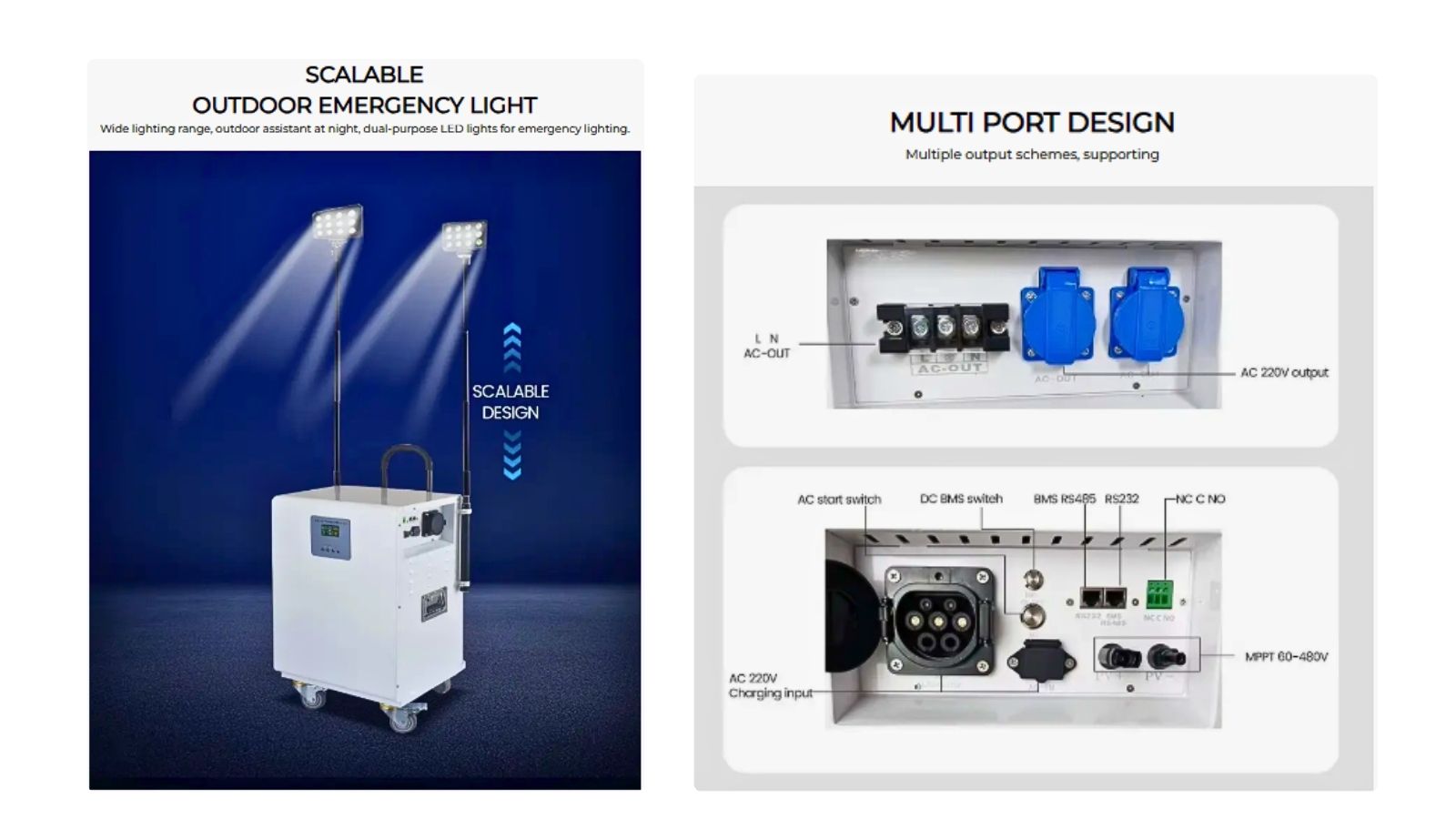 - Hỗ trợ sạc từ điện lưới và năng lượng mặt trời.