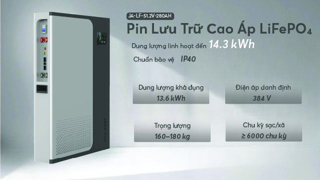 Tiếp nối sự thành công của ngôn ngữ thiết kế siêu mỏng, MPower giới thiệu dòng pin lưu trữ Jaka 14.3kWh (JA-LF-51.2V-280AH). Đây là sự lựa chọn tối ưu cho các biệt thự và hộ gia đình có nhu cầu sử dụng năng lượng cao, đòi hỏi sự ổn định tuyệt đối và công suất xả mạnh mẽ.
