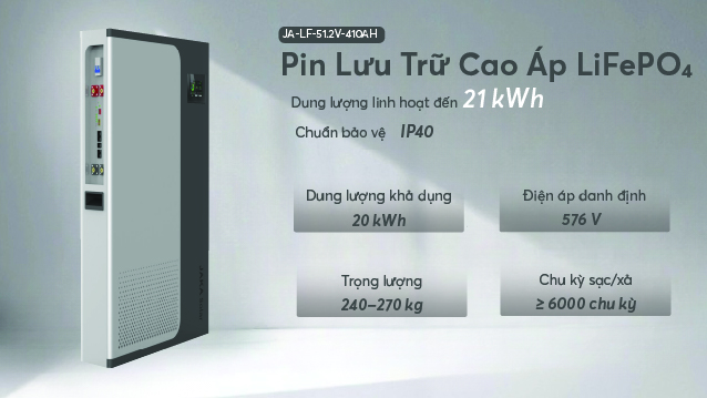 Tối ưu hóa hệ thống: Thay vì ghép nối nhiều khối pin nhỏ rườm rà, một đơn vị Jaka 21kWh duy nhất giúp hệ thống gọn gàng, giảm thiểu dây dẫn và tối giản hóa việc quản lý.