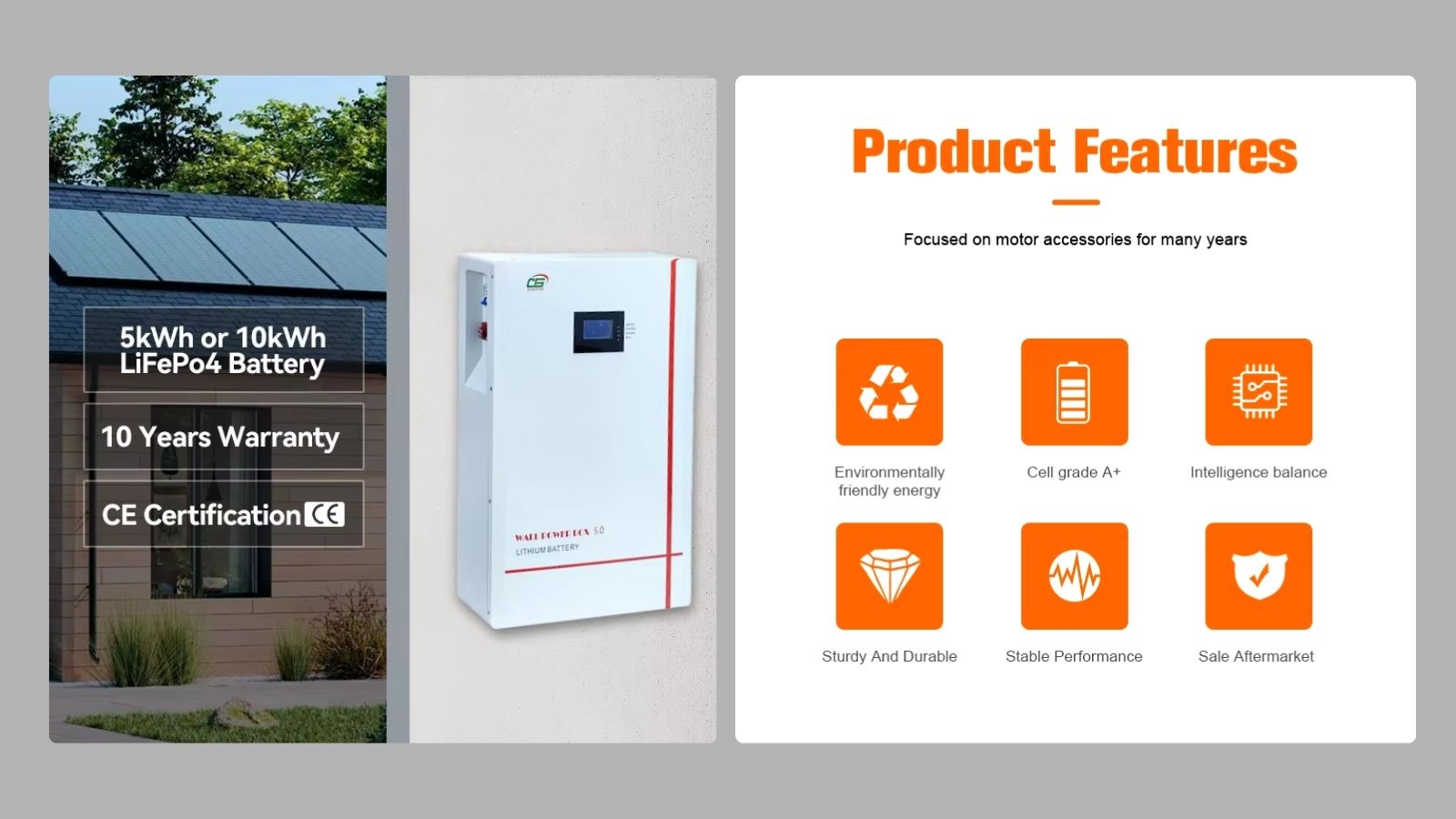 Với sự phát triển mạnh mẽ của năng lượng tái tạo, nhu cầu lưu trữ điện mặt trời và gió ngày càng cao. BG01/02 51.2V 5kWh/10kWh LiFePO4 Solar Battery Home Energy Storage System của Golden Future là giải pháp tối ưu để gia tăng khả năng tự chủ năng lượng cho gia đình, giảm chi phí điện năng và tận dụng hiệu quả nguồn năng lượng tái tạo. Thiết kế gắn tường hiện đại, tích hợp BMS thông minh, mang đến sự an toàn, bền bỉ và tiện lợi cho người sử dụng.