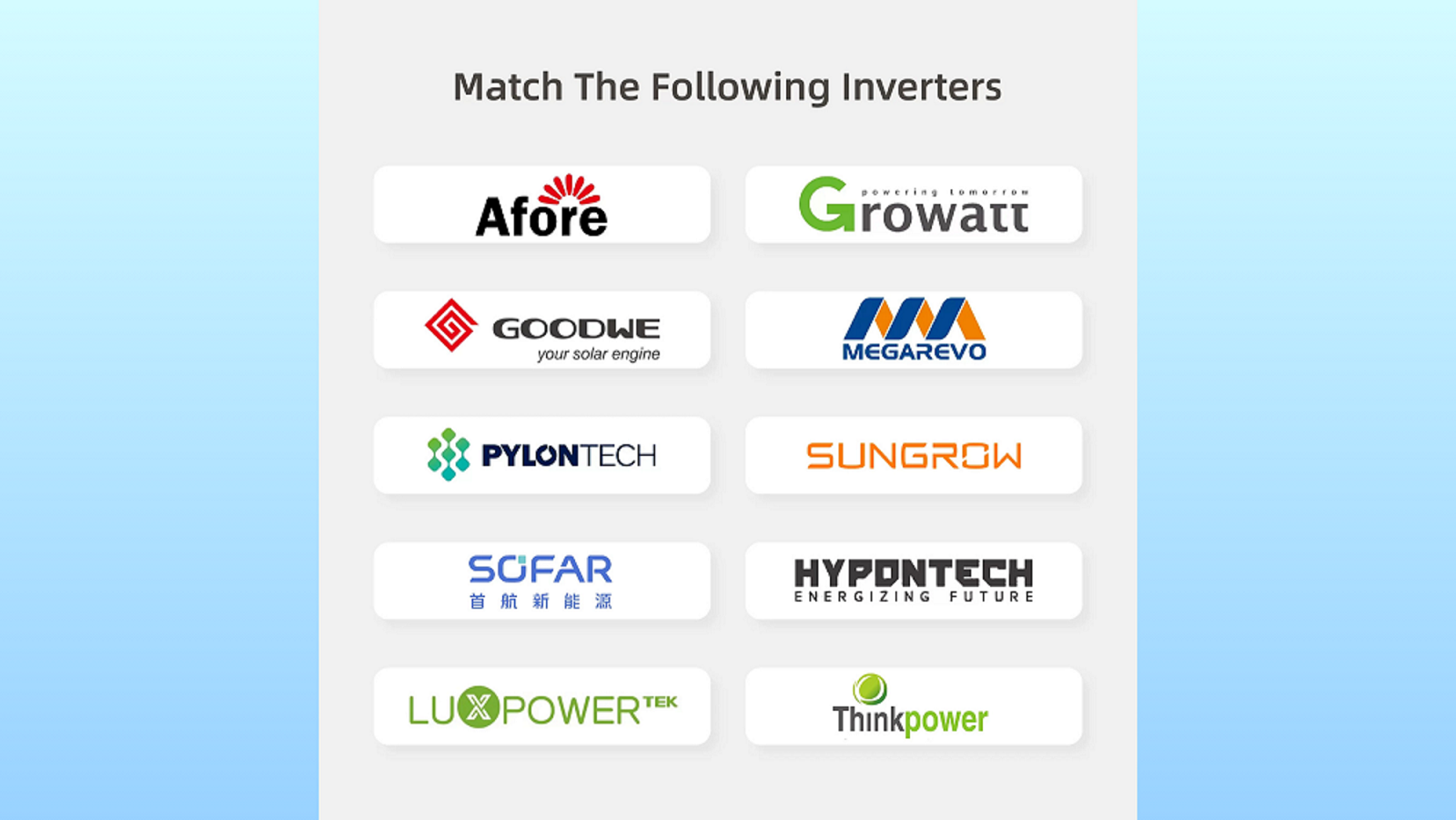 Có. Sản phẩm được thiết kế tương thích với nhiều thương hiệu inverter phổ biến trên thị trường (Sofar, Growatt, Deye, GoodWe, v.v.), giúp dễ dàng tích hợp trong các hệ thống điện mặt trời có sẵn.
