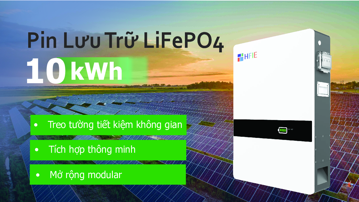 Theo EIA Photovoltaics 2024, pin LiFePO4 an toàn hơn so với pin lithium-ion thông thường, chống cháy nổ, phù hợp cho hệ thống điện mặt trời dân dụng 5–10 kW tại Việt Nam với 4–5 giờ nắng/ngày. LFPWall-10kWh là giải pháp lưu trữ năng lượng an toàn, linh hoạt và dễ mở rộng, lý tưởng cho các hộ gia đình tiêu thụ 300–500 kWh/tháng.